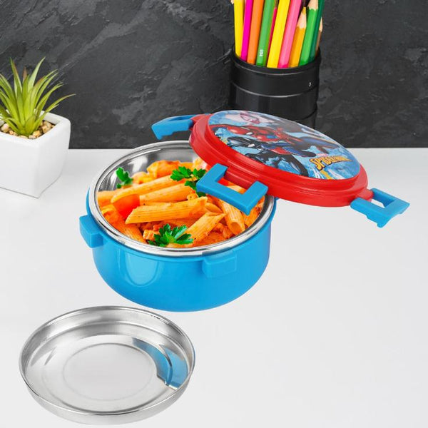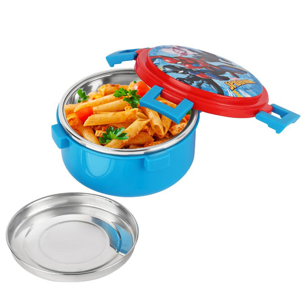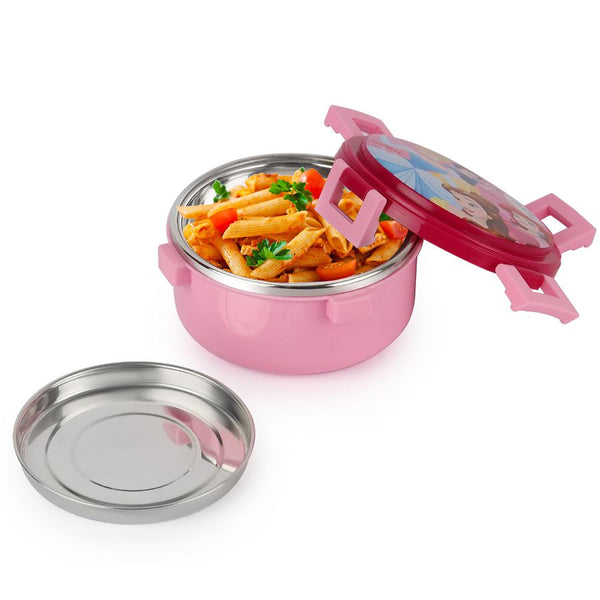Introducing the perfect lunchtime companion for kids - the Recess Insulated Lunch Box. Designed in a spacious round shape, this lunch box boasts a generous capacity while maintaining a lightweight profile. The charming pink, orange and red exteriors feature Hot Wheels, Spiderman and Disney Princess prints, adding a touch of fun to every meal. The side locks ensure a secure closure, preventing any spills or leaks during transportation. Inside, you'll find a high-quality stainless steel interior that's easy to clean. For the young ones who prefer variety in their meals, the included steel container separator plate lets you pack different foods without them mixing together. From sandwiches to snacks, fruits to veggies, this lunch box offers versatile storage options to suit every appetite. Whether it's a day at school, an outdoor adventure, a camping trip, or a delightful picnic, the Recess Insulated Lunch Box is the ideal companion.