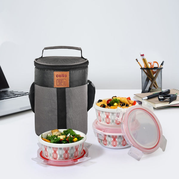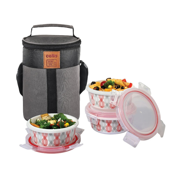 The Cello Red Trellis Opalware Lunch Box with Jacket is designed to enhance your dining experience. Crafted from non-see-through Opal Glass, it guarantees privacy by preventing any unwanted glances into your meal. Its food-grade quality ensures safety, and it's a breeze to clean, compatible with both microwave and dishwasher use.