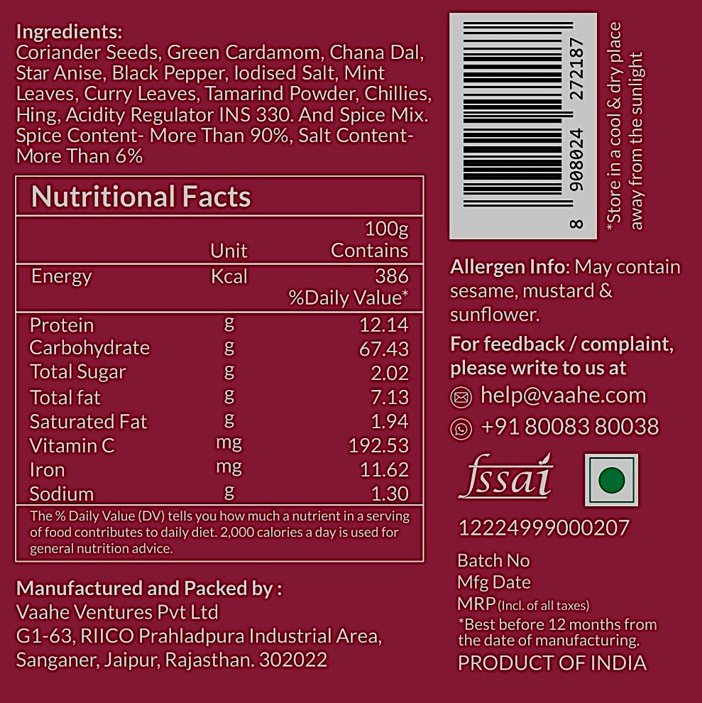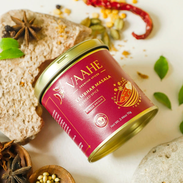 Our Sambhar Masala blend provides a rich, aromatic flavor that takes your South Indian dishes several notches above. The spice mix adds depth and warmth to your dishes. Ideal for making authentic sambhar, curries, and lentil soups.