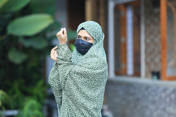 This is single piece prayer dress in textured crepe fabric, which gives you most comfort and cool while praying. It has 80 inches length and 5XL width.