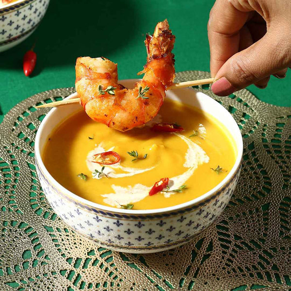 Crafted sleekly with a glistening finish, the bowl set is pristine and sturdy, which makes it befitting for long term usage. Match it with dinner plate from same collection and add beauty to your dinner table. Serve lentils and curries in the bowl.