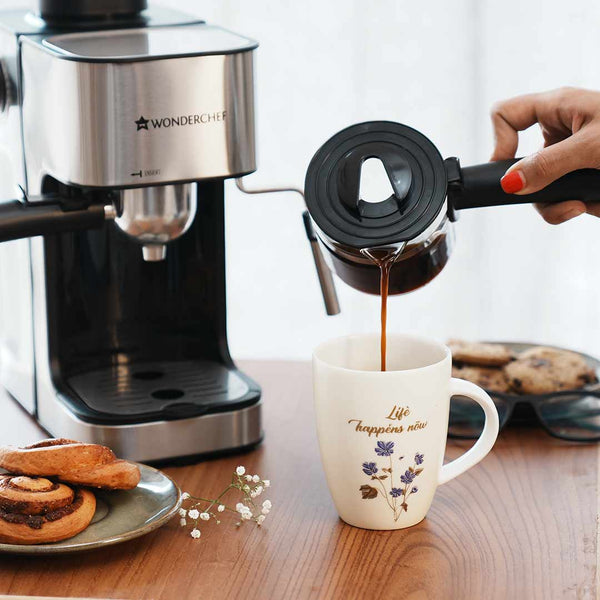 Wonderchef Sicilia Premium Mugs made in fine bone china epitomize elegance and style. The beautiful shapes, sophisticated colour palettes and mood-elevating statements written in quirky font styles will surely be conversation starters while you sip your coffee or tea. Perfect for everyday use these mugs are ideal for gifting as well. Celebrate your new journeys, new adventures and everything new that you love with this mug.