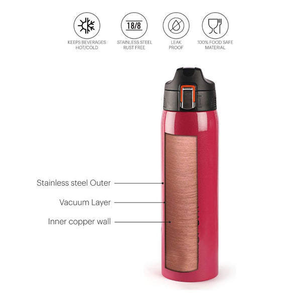 Introducing the Skipper Flask by Cello, a 750ml Vacusteel water bottle that's perfect for your hot or cold beverage needs. This stainless steel flask boasts patented vacuum technology for exceptional insulation, keeping your drinks at the desired temperature for hours. Say goodbye to reheating water and enjoy gas, effort, and time savings. With its wide mouth for easy filling and a user-friendly screw lid, it's a convenient companion that fits right in your bag.