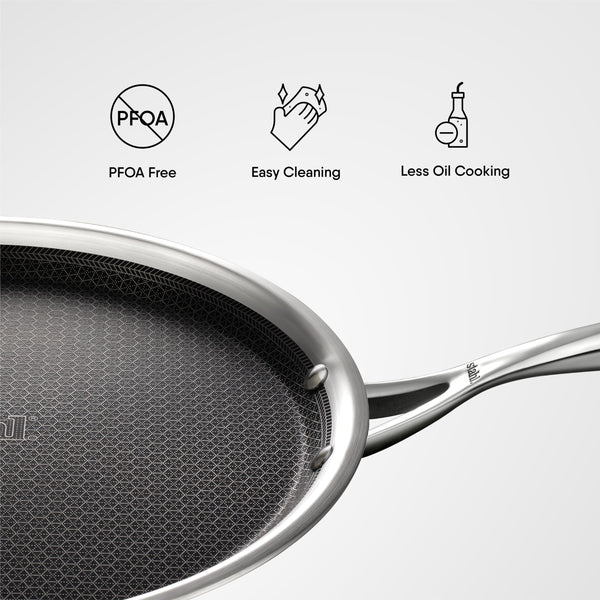 Details: The Stahl Artisan Hybrid Tawa is the best dosa tawa because of its stick resistant technology, chip-proof coating and less oil consumption. HexaRidge Technology: This tawa has a German technology Greblon coating which is embedded in a honeycomb structure. The ridges of the honeycomb structure are elevated so that there is no contact of the spatula on the stick resistant tawa, giving it five times the life of any other coated tawa on the market. You can use a metal spatula on it, or even a knife! The Stahl Artisan Hybrid Tawa, is made of triply technology. This tava can be used on an induction base as well as a stove top. It is manufactured with utmost care and precision, ensuring an impeccable feel and finish, with great utility and heat efficiency. Great to Make : Dosas, Chillas, Crepes, Pancakes, Parathas, Omelets.