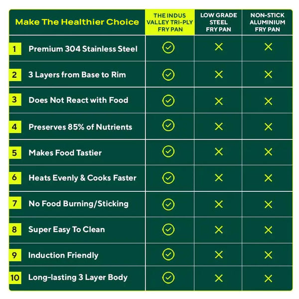 Thoughtfully crafted for safety, durability and good control - easy to flip and toss. The Indus Valley’s triply frying pan is aesthetically designed only for your comfort and safety.