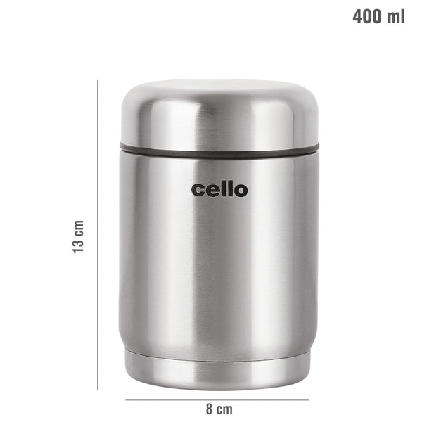 Introducing the Cello Silver 400ml Soup and Food Jar, a must-have for on-the-go dining enthusiasts. Crafted from food-grade stainless steel, this insulated container boasts vacuum insulation technology, ensuring your semi-solid foods or soups stay at their ideal temperature wherever you are, making it the perfect companion for your culinary adventures.