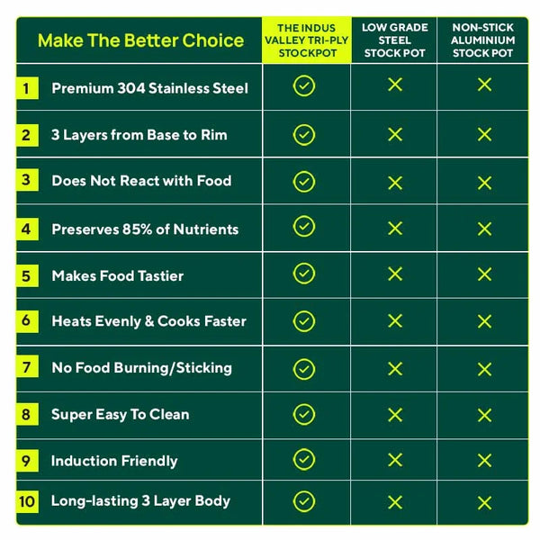 You should definitely buy the best quality biryani pot that is actually 3 times better than normal stainless steel pot and those stock pots which have tri-ply only at the base.