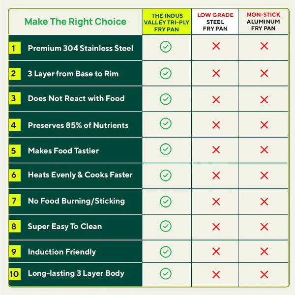 TurboCuk Tri-ply Stainless Steel Fry Pan+ Glass Lid, Premium Quality, 3 Layer Thick Body, 100% Toxin-free, Non-stick, Induction & Gas, 1.5/1.7/1.9L