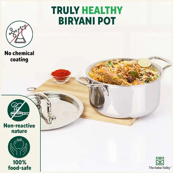 TurboCuk Tri-ply Stainless Steel Casserole/ Biryani Cooking Pot+ Steel Lid, Premium Quality, 3 Layer Thick Body, 100% Toxin-free, Non-stick, Induction & Gas, 3.1L
