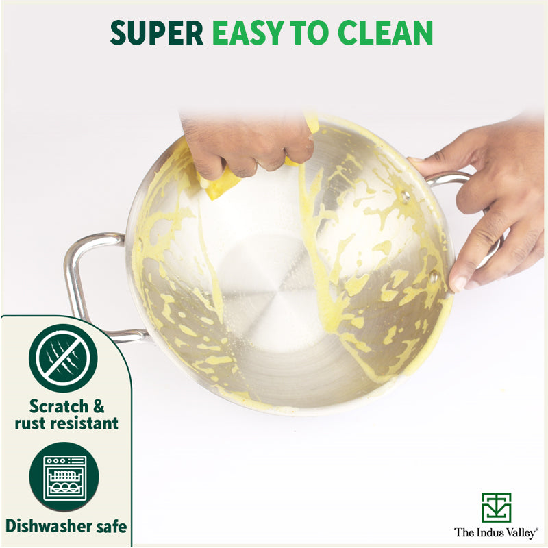🥄SCRATCH RESISTANT: This triply kadhai is scratch, rust and damage resistant. So, no worries about kadhai rusting or using metal ladles or spatulas!Â