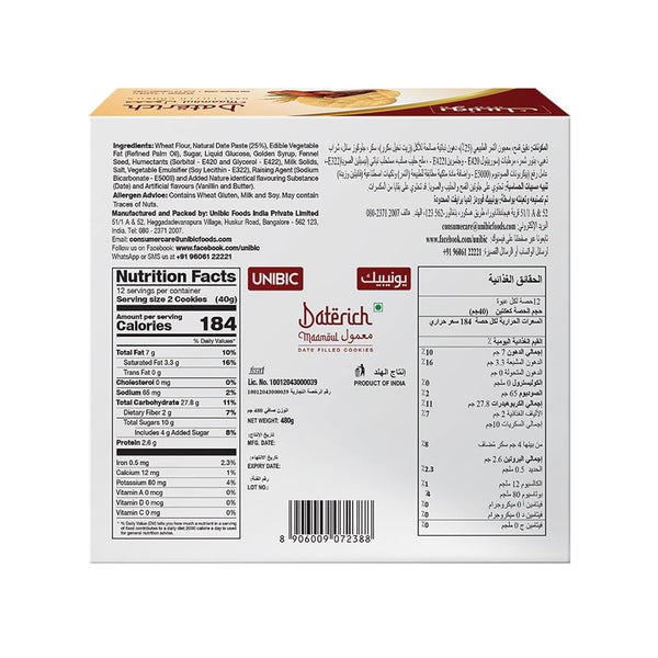 Discover the sophisticated indulgence of UNIBIC's Center Filled Date Cookies. Inspired by the famed Arab delicacy Ma'amoul, these Atta cookies offer a fruity sweetness while being rich in taste and nutrients. Perfect for sharing or as a thoughtful gift, elevate your snacking with a touch of elegance.
