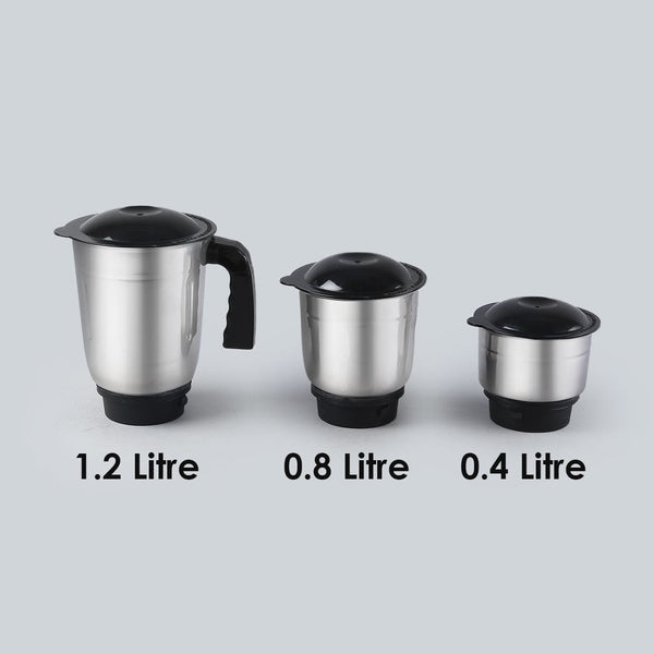 Liquidising Jar - 1.2 Litres, Grinding Jar - 0.8 Litres, Chutney Jar - 0.4 Litres