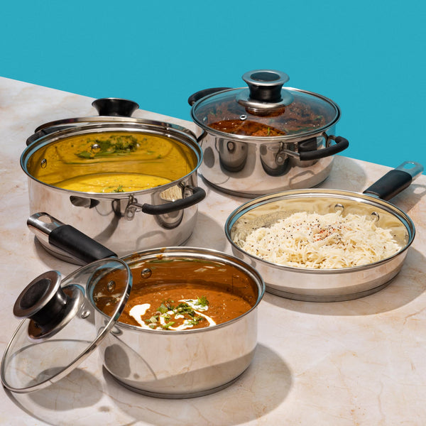 Details: Special encapsulated base. Sandwhich bottom which ensures even cooking. Thus prevents food from getting burnt.