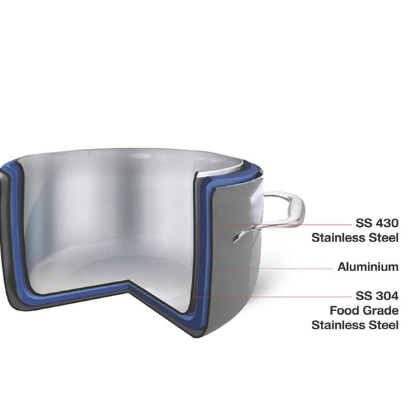 Triple layered construction: Combining appealing aesthetics with clever functional components, the Vinod triple – layered platinum kadai is specially designed for reliable and hygienic everyday cooking in home and industrial kitchens.