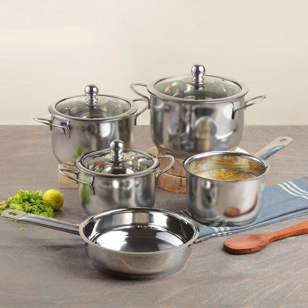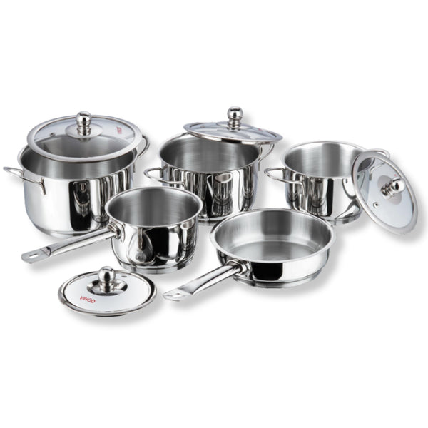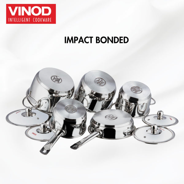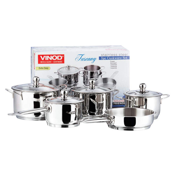 Vinod Tuscany Stainless Steel Cookware Set of 5 Pieces | Saucepot Set of 3 Pcs with Glass Lid | Saucepan and Frypan | Extra Deep | Induction Base | 2 Year Warranty