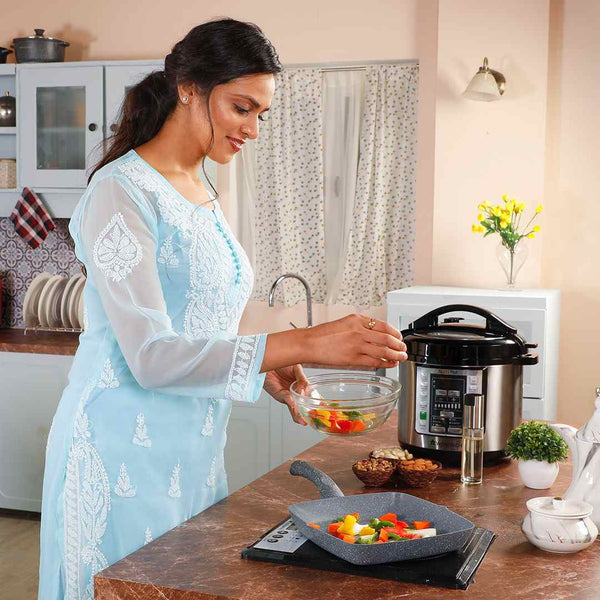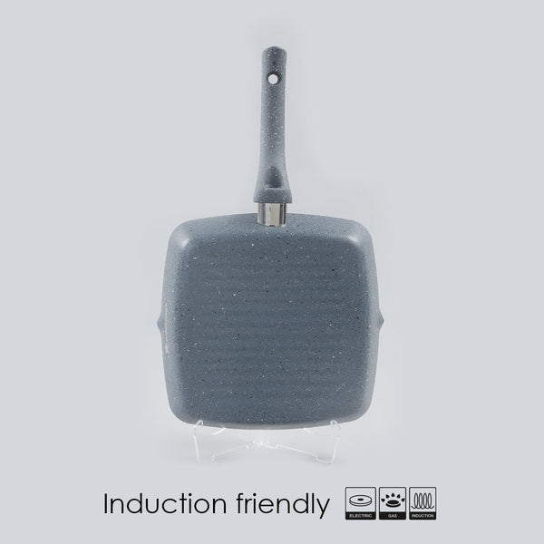 Granite Non-stick Grill Pan, Soft-touch Handle, Virgin Grade Aluminium, PFOA/Heavy metals free, 3.5mm, 2 years warranty, Grey
