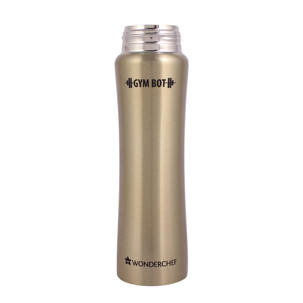 Gym-Bot Stainless Steel Single Wall Water Bottle - Gold,750ml