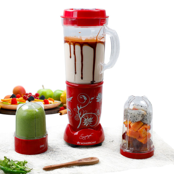 Nutri-blend Juicer, Mixer, Grinder, Blender & Smoothie Maker |500W 22000 RPM 100% Full Copper Motor | Stainless steel Blades | 3 unbreakable jars | 2 Years warranty | Recipe book by Chef Sanjeev Kapoor | Red