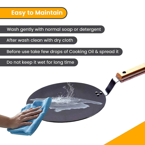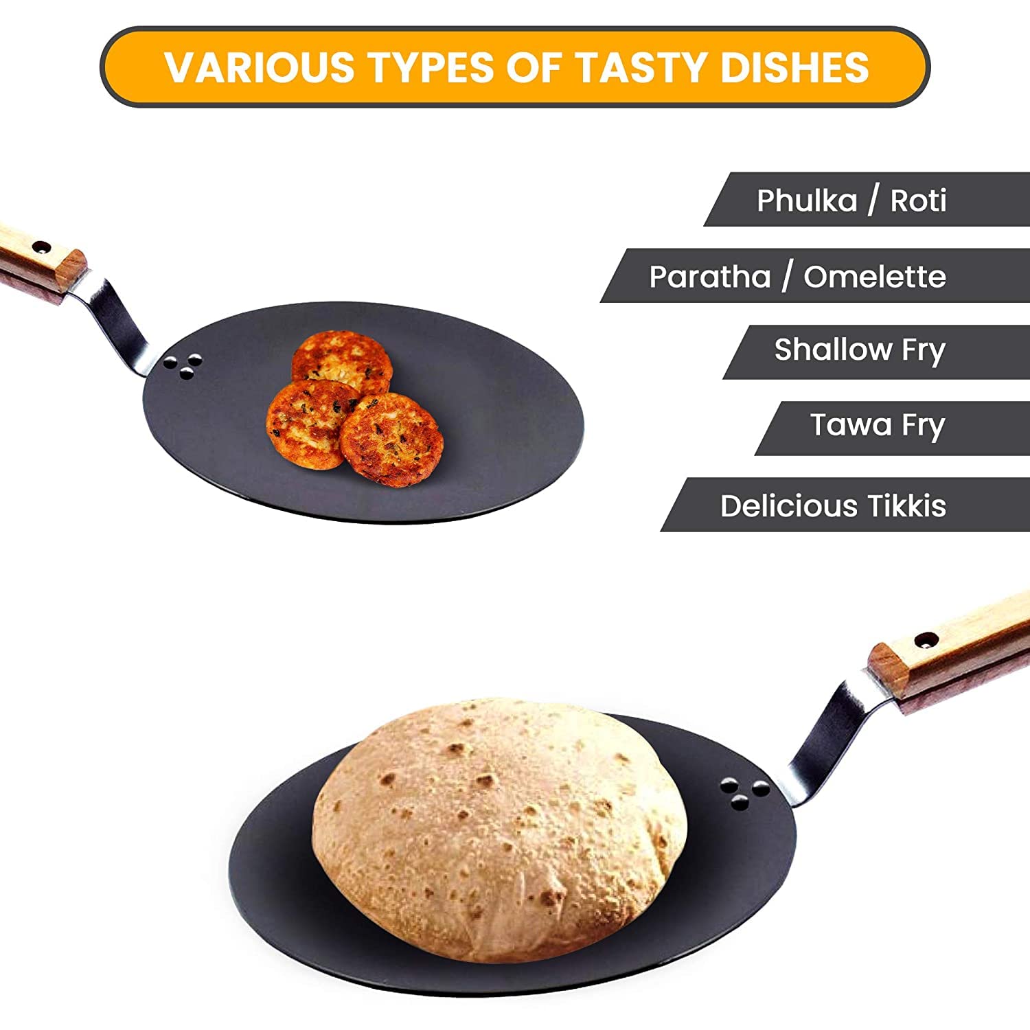 XL Kitchen Iron Concave Tawa 25 cm with Wooden Handle, Roti Tawa, Dosa Tawa