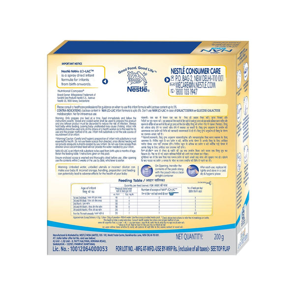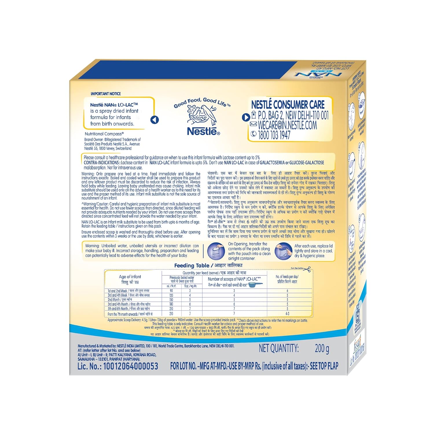 Nestle NAN LO-LAC | Infant Formula Powder | Bag-In-Box Pack | For Infants from Birth Onwards | 200g