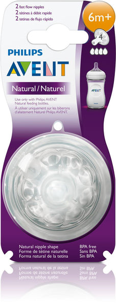 Philips Avent Natural Teat 4 Holes Fast Flow for 6months and above, Pack of 2