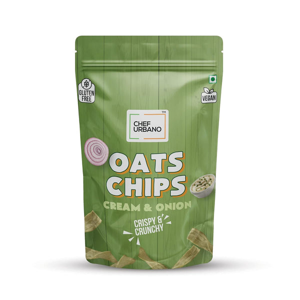 Chef Urbano Oats Chips Cream & Onion 85g | Gluten Free | | Vegan | Low GI| Crunchy Healthy Snacks | High Protein and Fiber Rich | Good for Diet | Good for Kids ( Pack of 50 )