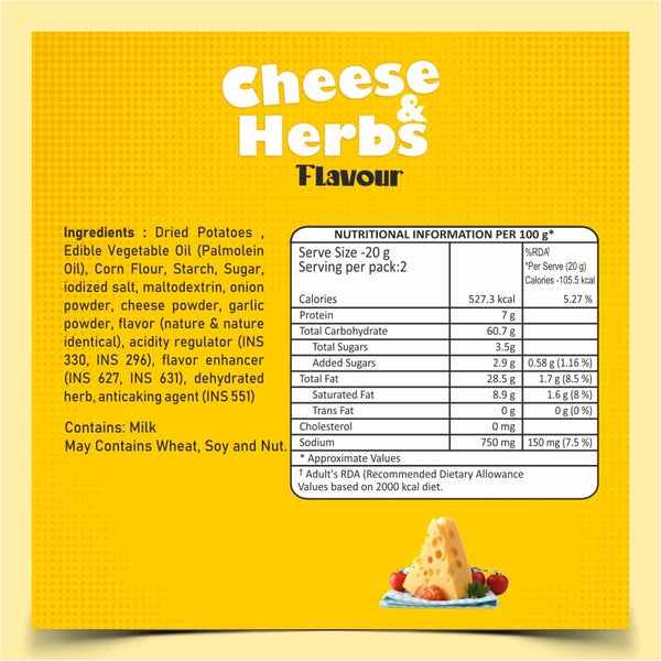 Dibs stacks (Pack of 6, 45 GM Each) Cheese & Herbs Potato Crisps Chips On the Go Adventure, Crunchy Healthy and Tasty Chips, Snacks Chips