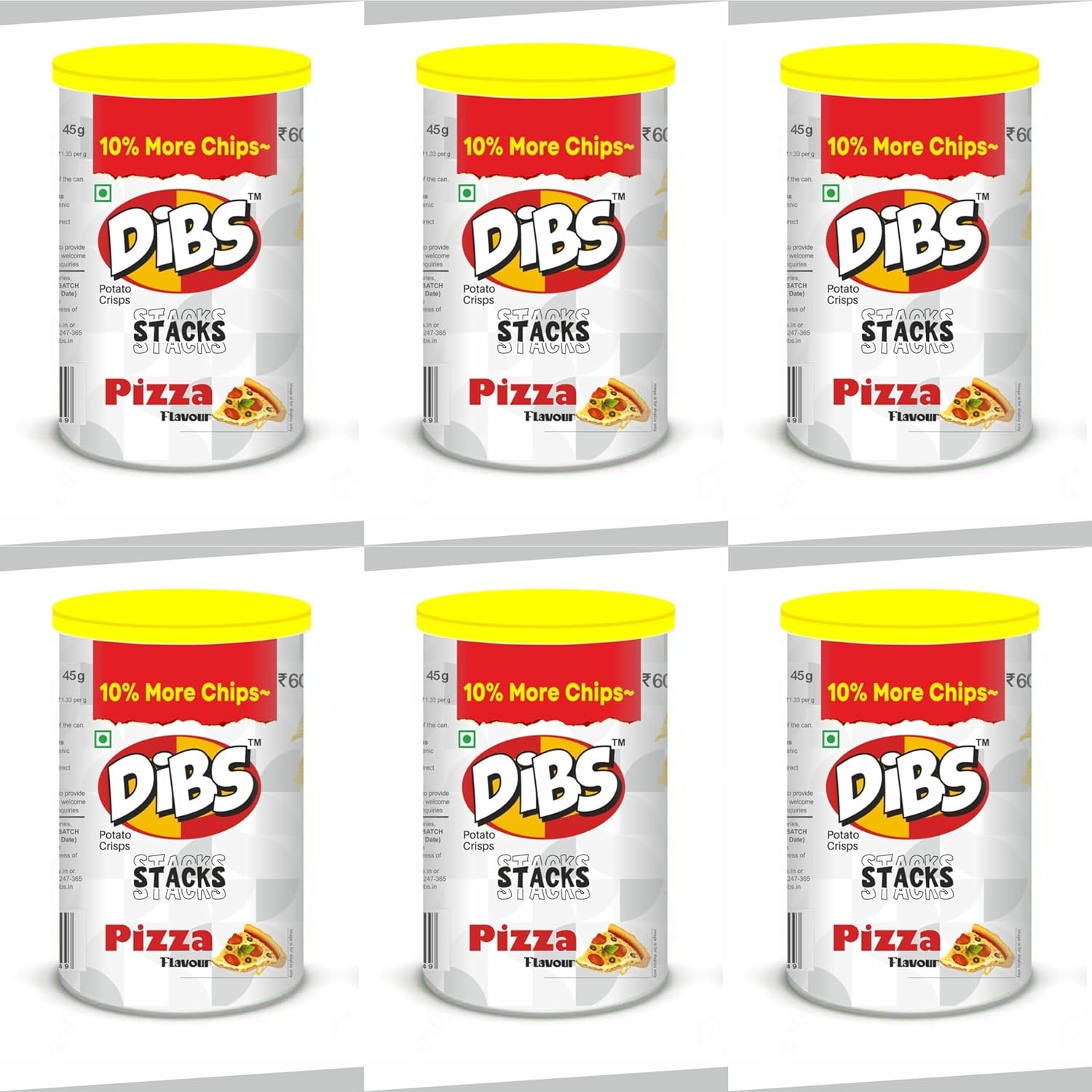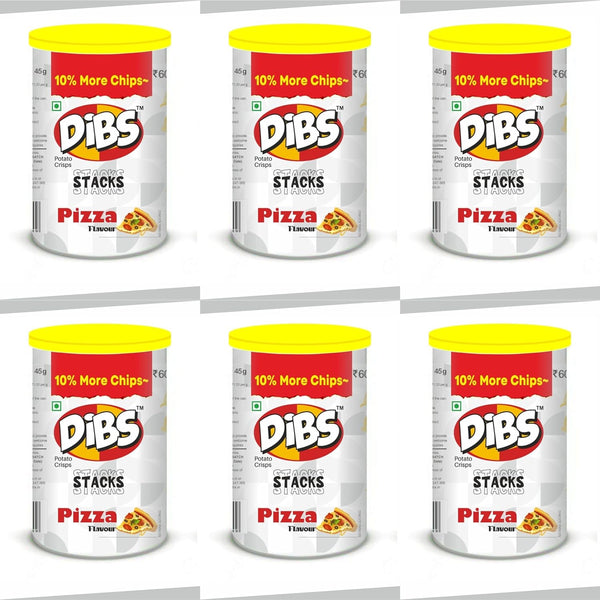 Dibs stacks (Pack of 6, 45 GM Each) Pizza Potato Crisps Chips On the Go Adventure, Crunchy Healthy and Tasty Chips, Snacks Chips