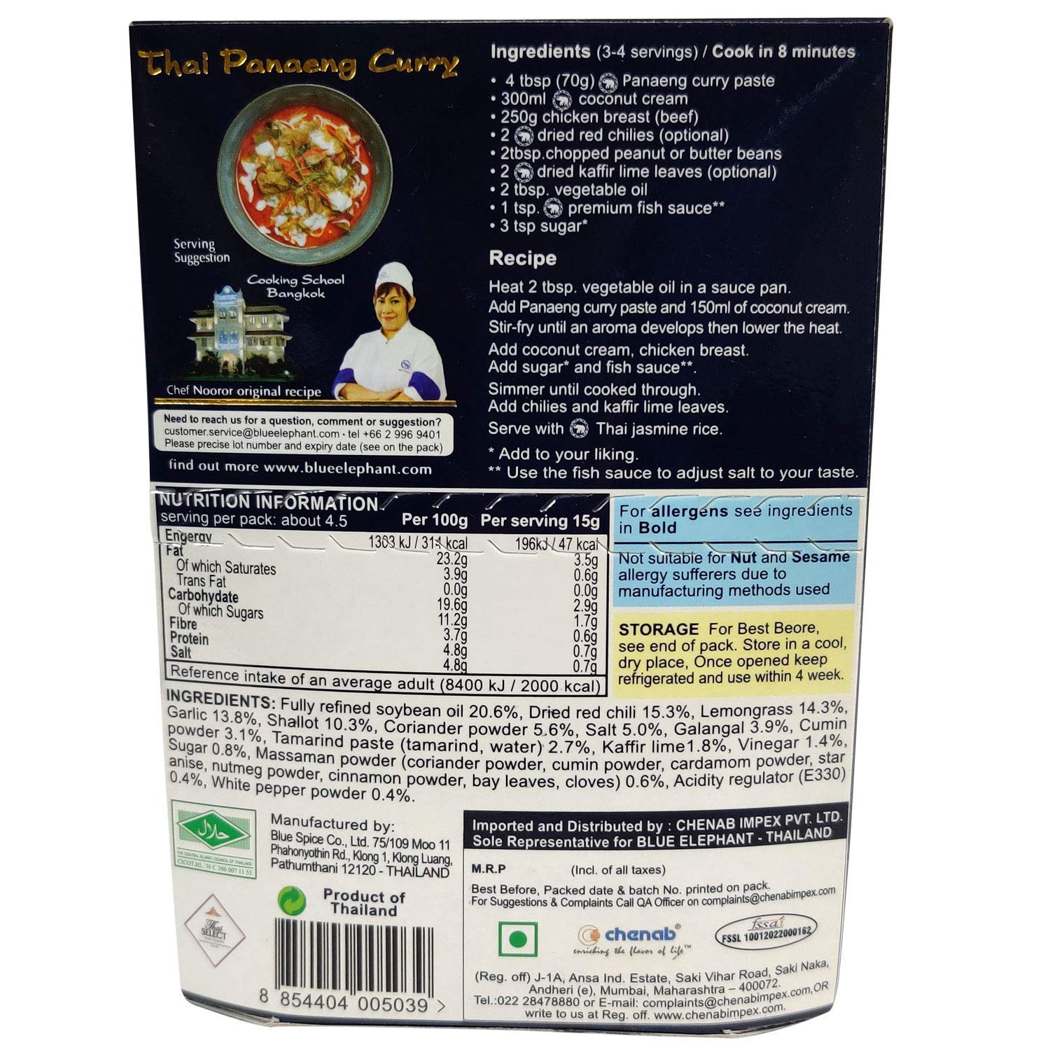 4x Blue Elephant Panaeng Curry Paste 70g each - Pack of 4