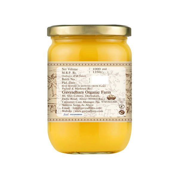 Gavyadhara A2 Desi Cow Ghee | Traditionally Made | 1Ltr Glass Jar