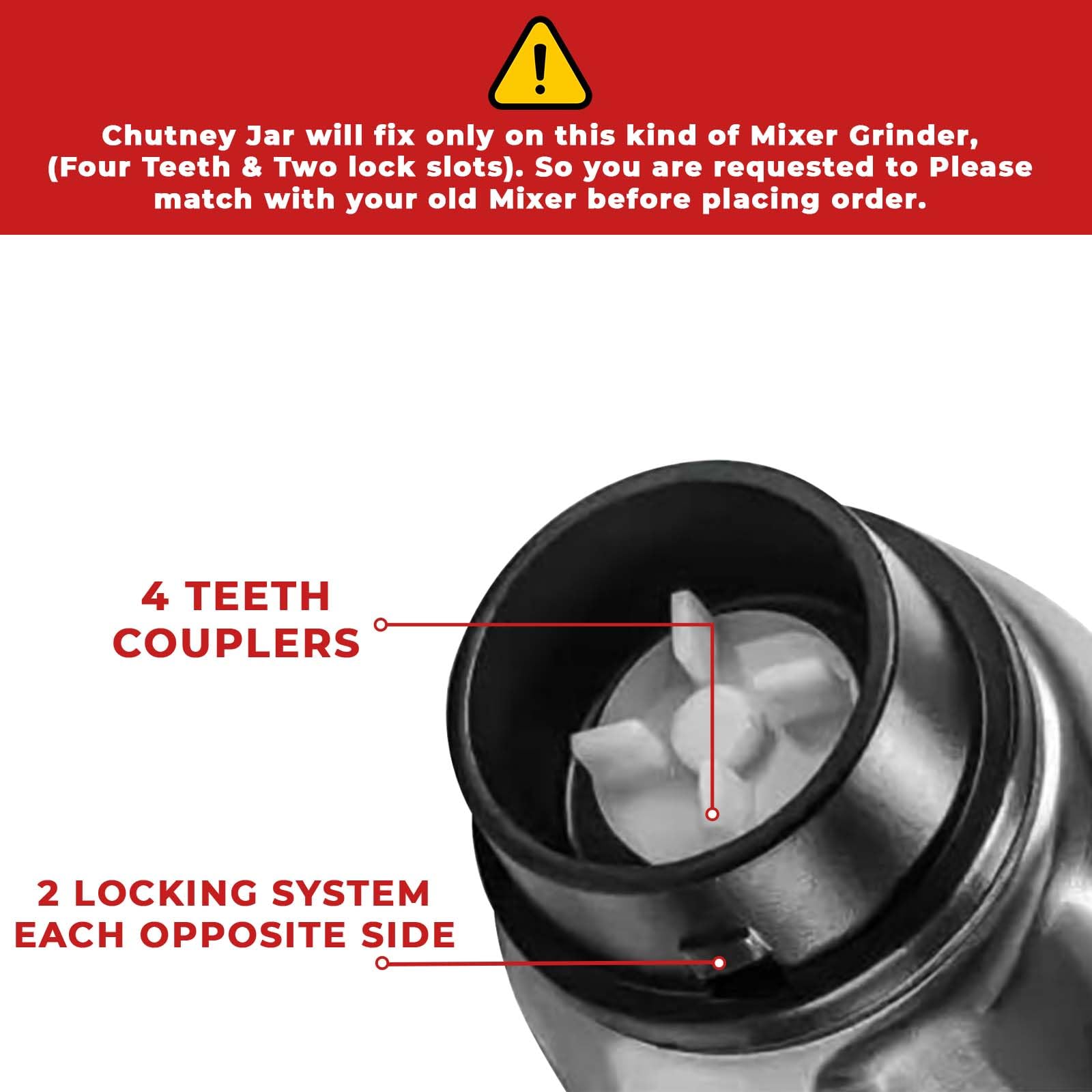 AADHIK Mixer Jar 400 ml Chutney Jar, Quality Stainless Steel Blades, Suitable for All mixer Grinder With 4 Teeth Lock- Pack Of 1