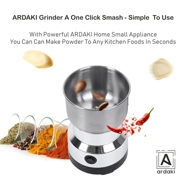 ARDAKI Grinder Machine for Kitchen Mixer Grinder Multi Functional Coffee Herbs Spices Nuts Grain Seasonings Spices Mill Powder Machine Stainless Steel Mixie for Kitchen (Mixer_Grinder_200)