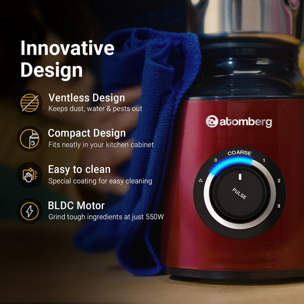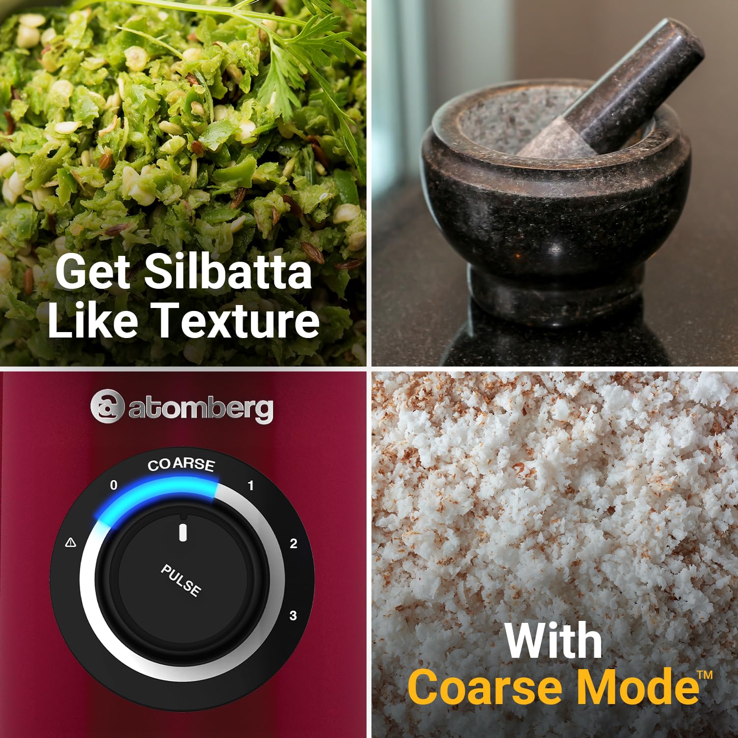 Atomberg Zenova Mixer Grinder with Unique Coarse Mode | Advanced Safety Features | 4 Jars including Chopper Jar with Hands Free Operation (Red Wine)