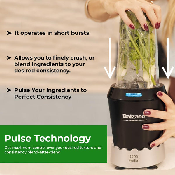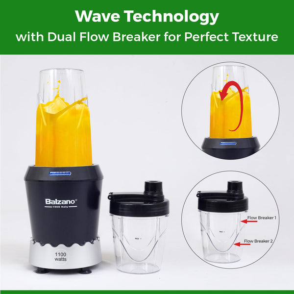Balzano 1100W Ultra-Speed Bullet Mixer Grinder (Italian Design & Engineering) Blender for Smoothie and Juices, Juicer Mixer Grinder, Blender for Kitchen, Surgical Grade Stainless Steel Blades