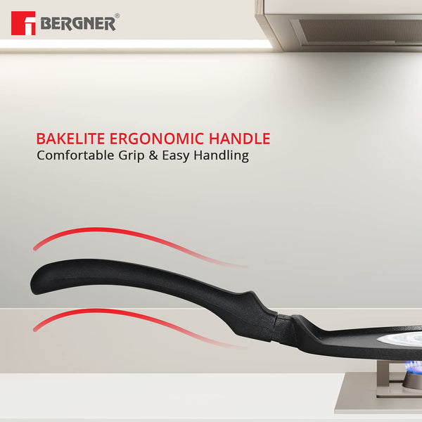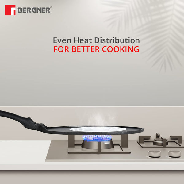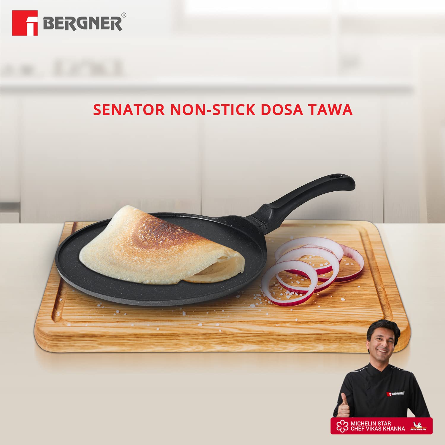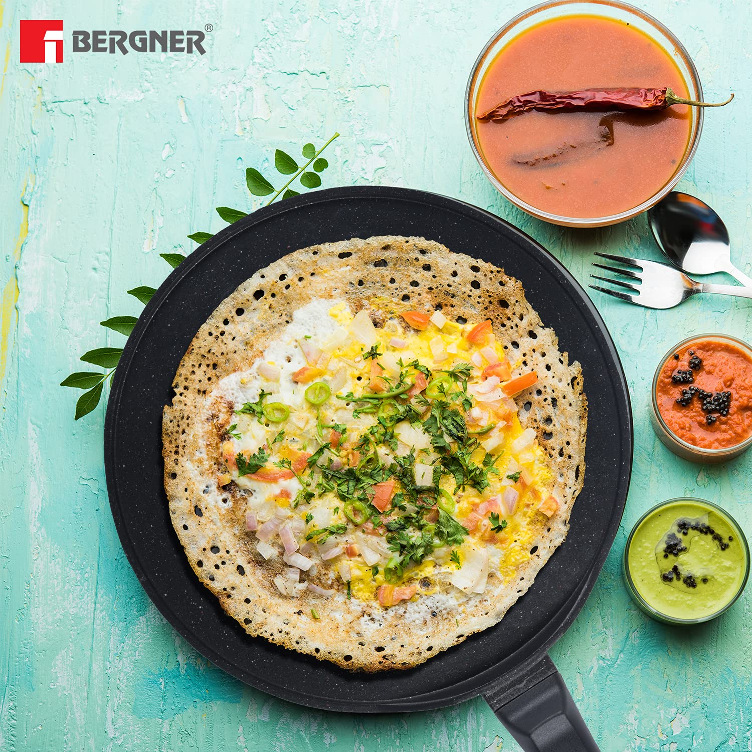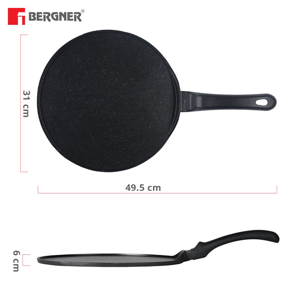 BERGNER Senator Die-Cast Aluminium Non-Stick Dosa Tawa, 31cm, Black