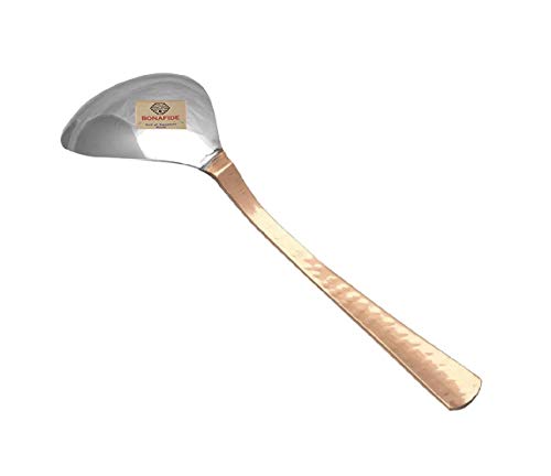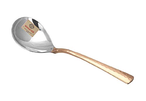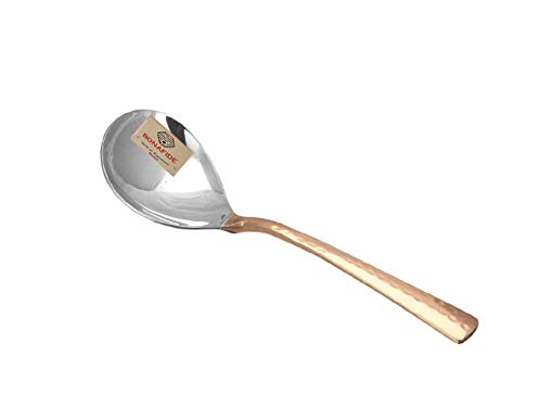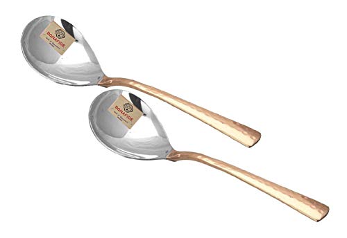 BONA FIDE - Unit of signature metal exports,Copper Spoon Serving Spoon Dal Rice Spoon Hammered Designed Homeware Hotelware::Set of 2 Copper Stainless Steel Spoon 8 inch Long for Serving Dishes