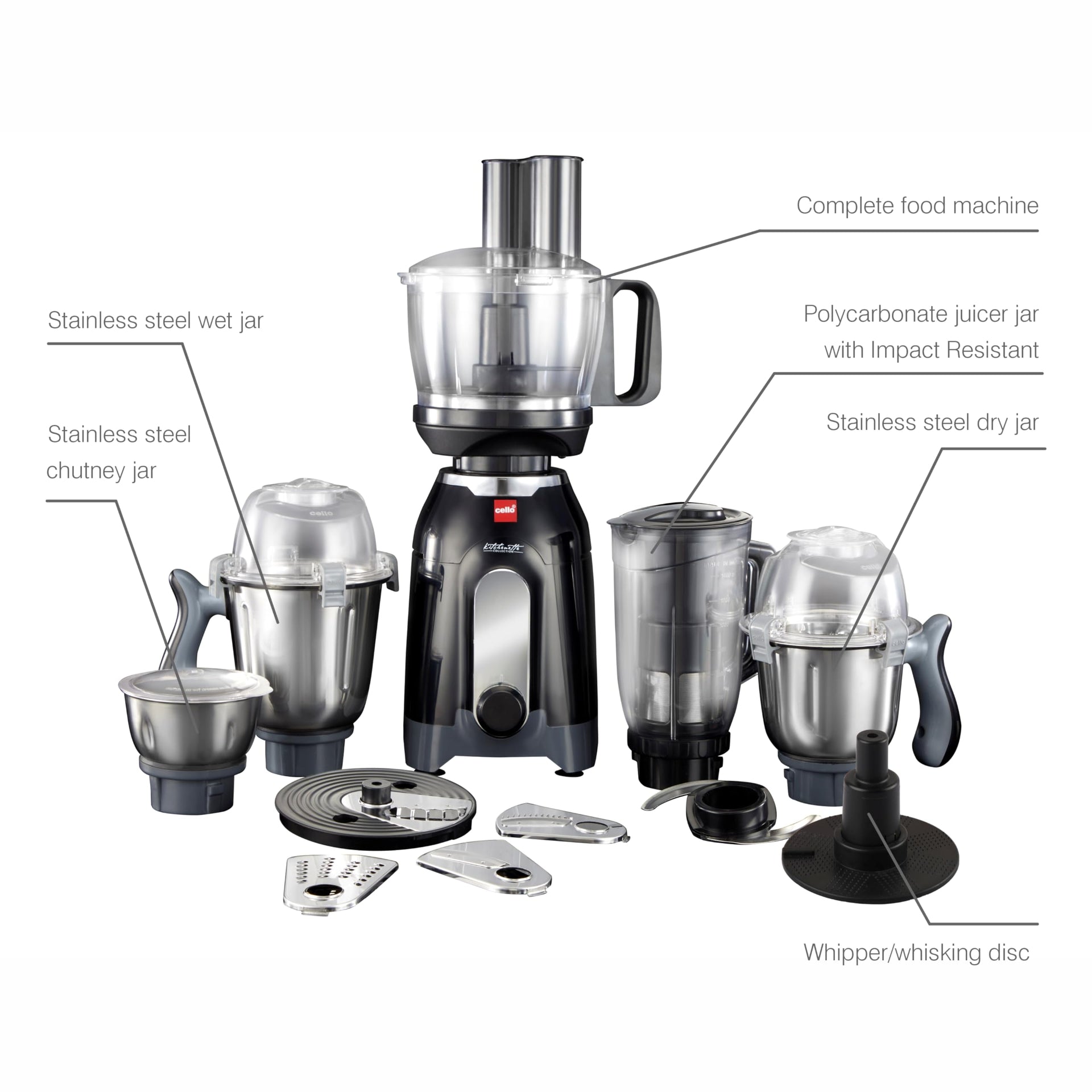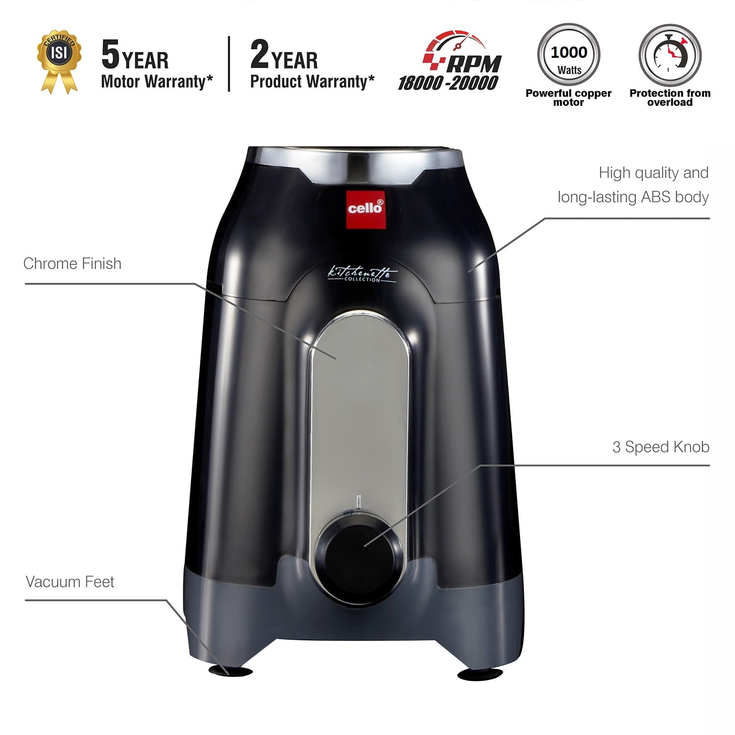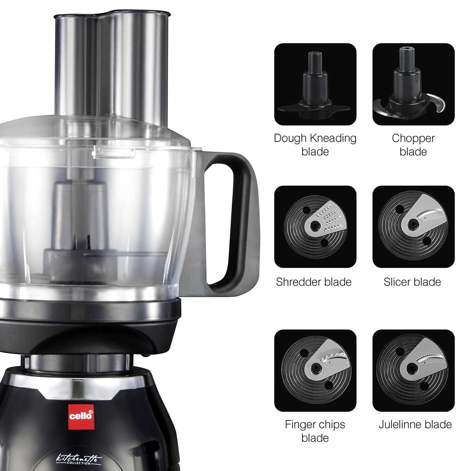 Cello Discovery Chef Mixer Grinder 5 Jars, 1000Watts | Chutney Jar, Wet Jar, Food Machine, Juicer Jar, Dry Jar | Stainless Steel Jars and Sturdy Body | 6 Additional Attachments