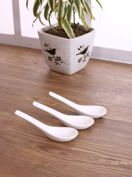 Clay Craft Basics White Fine Ceramic Soup Spoons (Set of 4) of 13.4 cm