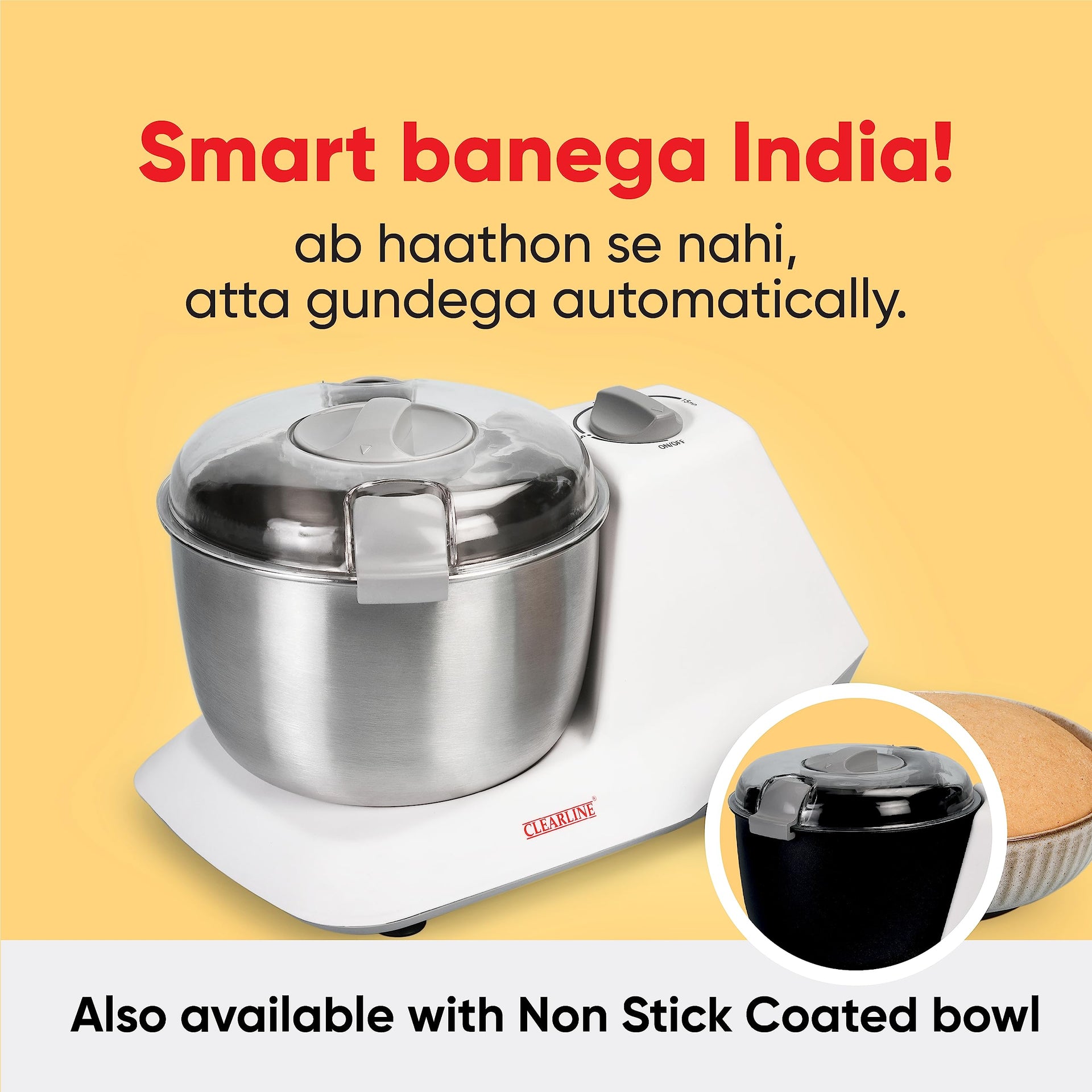 Clearline Automatic Electric Atta Kneader Dough Maker with Stainless Steel, Smart Atta Kneader Mixer and Dough Kneader Machine, Dough Mixer Machine with 650 Watts Power
