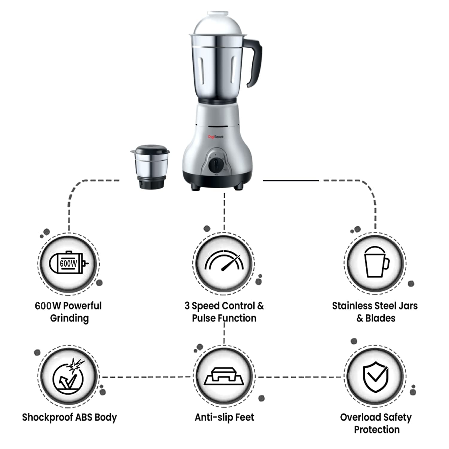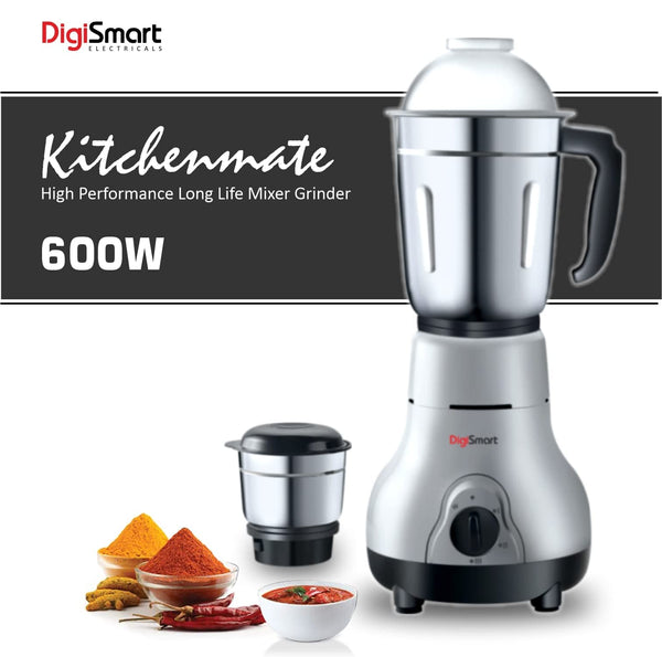 DigiSmart Kitchen Mate Powerful 600 Watt Mixer Grinder (Gray and Black) | 2 Jar | Comes With 2 Year Warranty (BLACK & GRAY)