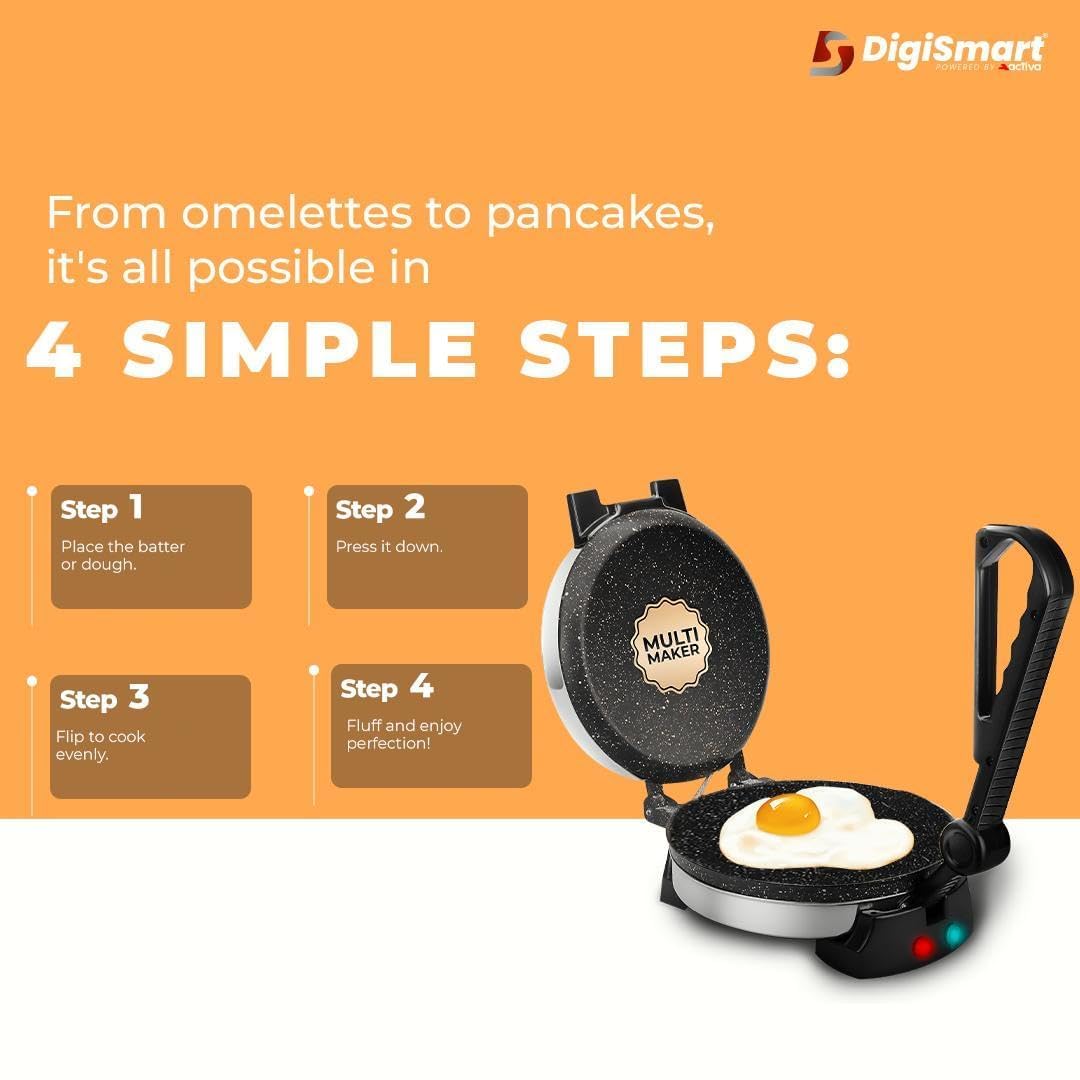 DIGISMART Multi-Maker, Versatile Roti/Paratha/Omelette/Thepla/Khakhra/Dosa Maker, Nonstick Coating, Easy to Use, Durable Design come with 1 Year Warranty