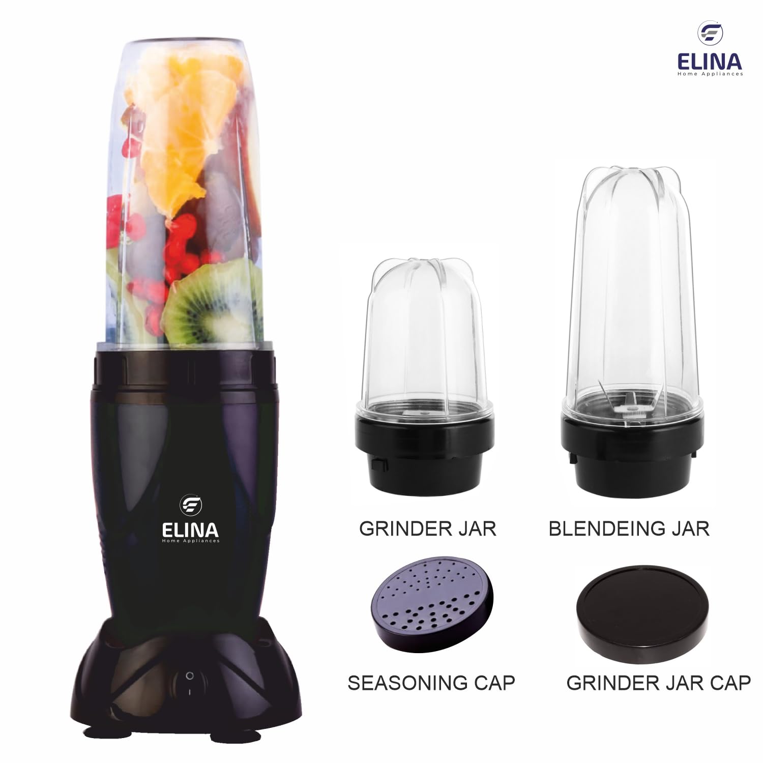 ELINA Nutri ACE Mixer Grinder, Blender | Powerful 450-watt Copper Motor with high 20000 RPM | Unbreakable Transparent Jars | Stainless Steel Blades | Smoothies, Shake, Chutney | Black