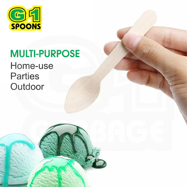G 1 Bio-degradable Disposable Wooden Spoons | Eco Friendly Disposable Spoons | for Home Use, Party, Events |160 MM | 100 Pieces |