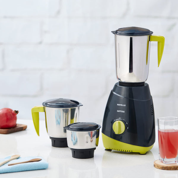 Havells Capture 500W 3 Jar Mixer Grinder, 3 Speed Options with Whip (Black) - (Indian Plug)