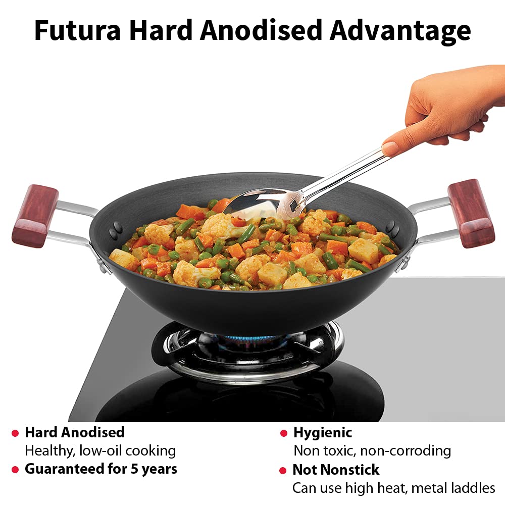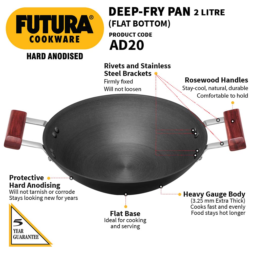 Hawkins Futura 2 Litre Deep Fry Pan, Hard Anodised Kadai, Flat Bottom Kadhai, Black (AD20)