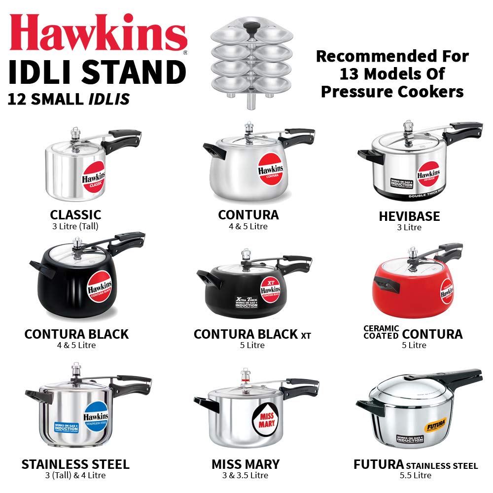 Hawkins Mini Idli Stand - 12 Mini Idlis, (for 3 Litre and Bigger Pressure Cooker), Silver (ID12S),Aluminium