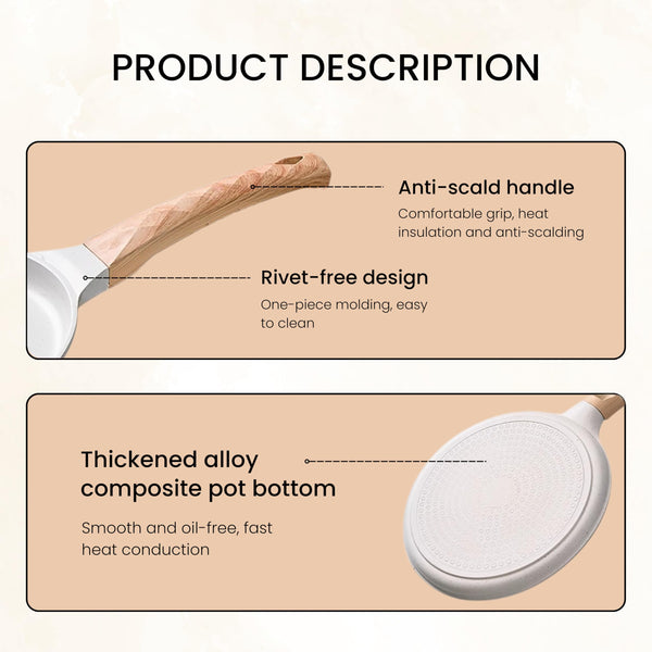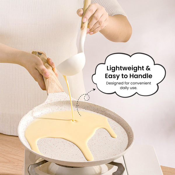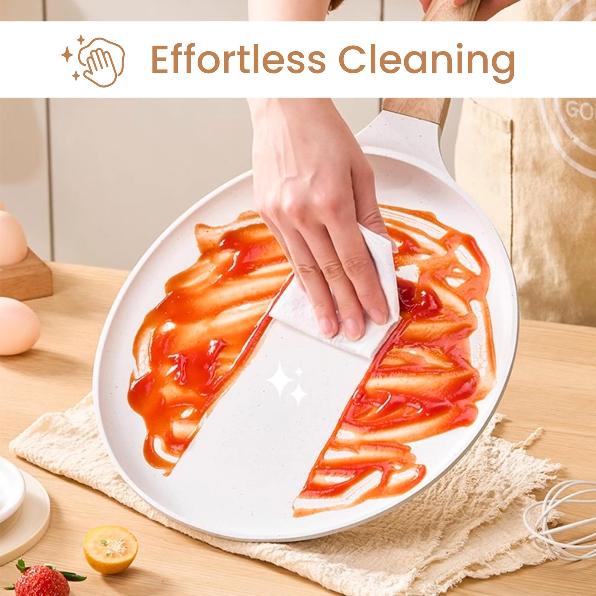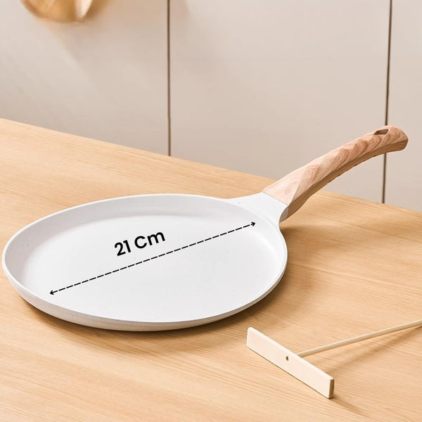 HomeEssentials Maifan Nonstick Tawa – Healthy Nonstick Pan with Wooden Handle/Easy to Clean Cooking Pan for Dosa, Chapati, Pancakes & Omelets/Induction & Gas Stove (White)