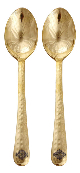 Indian Art Villa Brass Hammered Spoon, Serveware Tableware, Length 7" Inch, 2 Pieces, Gold