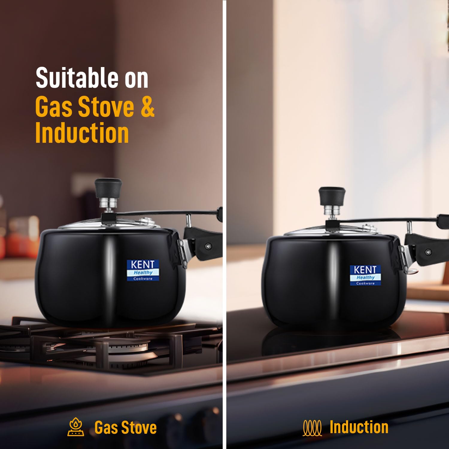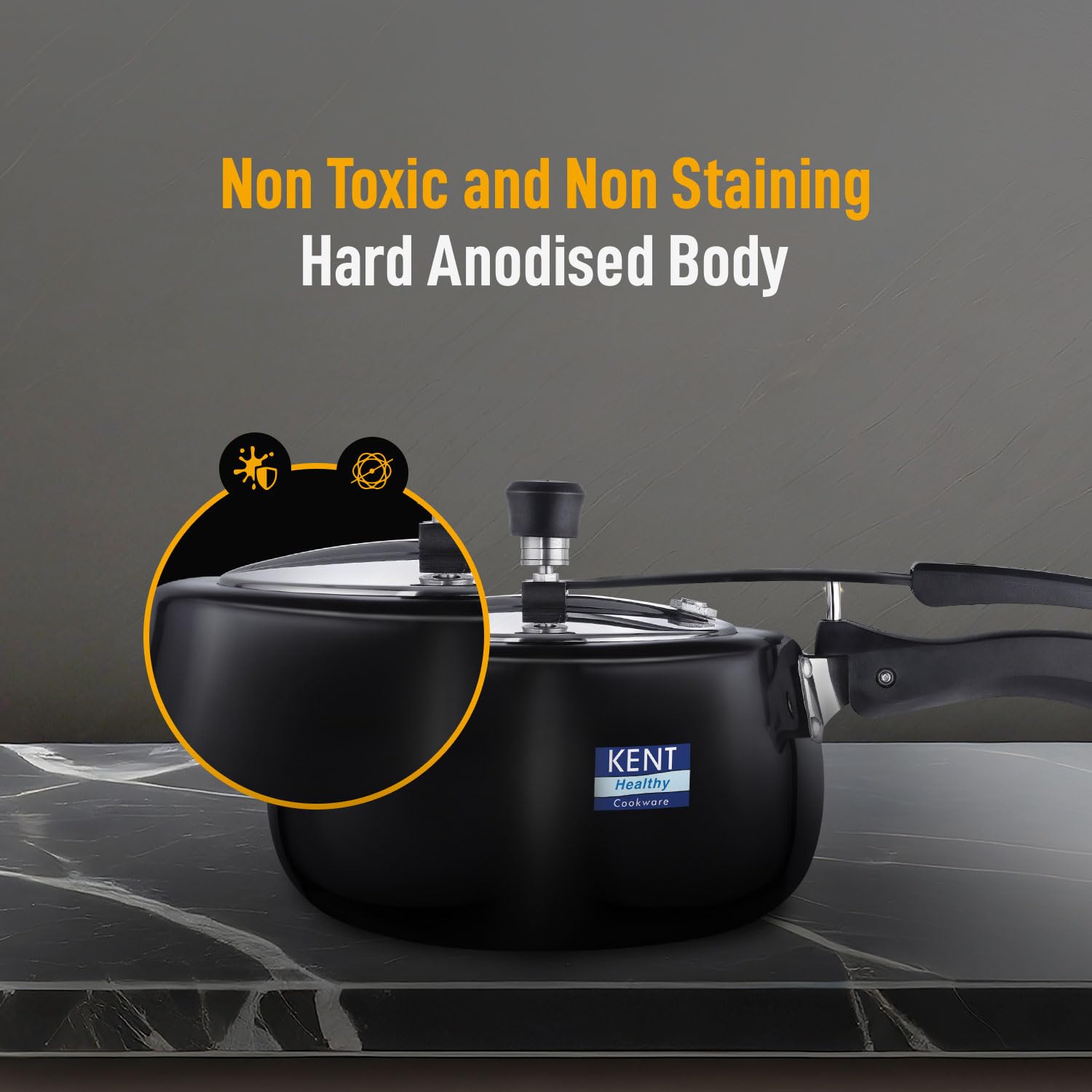 KENT Hard Anodised Cooker With Ss Inner Lid | 3 Litre | Suitable For Induction | 5 Years Warranty | Black