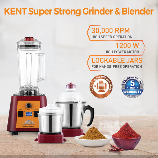 KENT Stainless Steel Super Strong Grinder&Blender|30,000 Rpm Electronic Variables Speed Control|Spill-Proof Lids With Jars|Overheating&Overcurrent Protection|Lockable Jar|Speed Control Switch